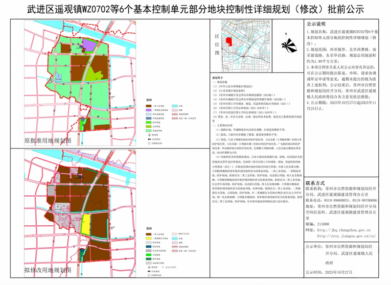 武进区遥观镇WZ0702 等6个基本控制单元部分地块控制性详细规划(修改)批前公示