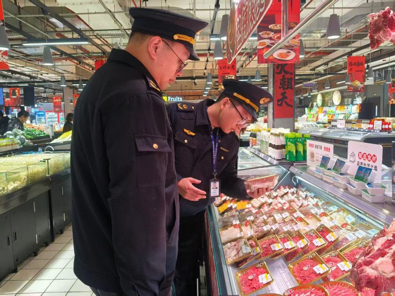 聚焦食品安全,严守源头风险关口。检查人员重点对春节期间畅销的冷冻食品、米面粮油、肉制品、乳制品等的外观形态、保质期、标签标识及索证索票情况进行细致检查。同时对中小超市在售食品的保质期、标签标识、贮存条件进行细致排查,督促经营者及时清理临期食品。针对农贸市场,尤其加强对肉类摊位的监督检查,核查是否票证齐全、检疫合格,重点排查注水牛肉等违法行为,确保肉类产品来源合法、质量合格,坚决筑牢食品安全防线。