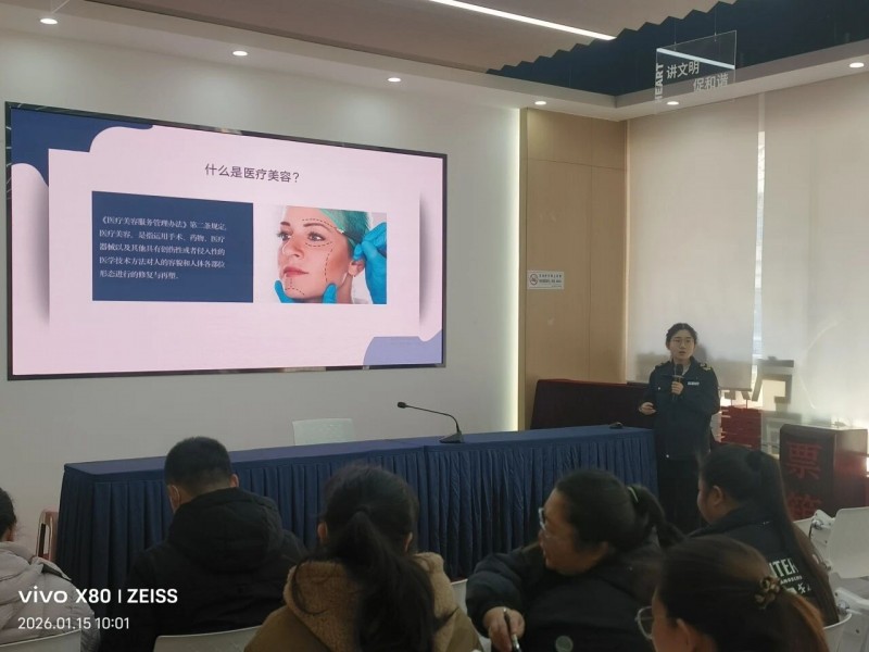 活动立足源头治理,着力提升基层一线发现、识别、报告非法行医行为的能力。经开区公卫中心卫生监督科工作人员围绕非法医疗美容的界定标准、隐蔽形式及社会危害,对社区工作人员开展专题培训。课程结合区域内已查处的典型案件,深入剖析违法特征与排查要点,强化社区网格化监管中的“前哨”作用。培训设互动答疑环节,针对线索甄别、上报流程等实务问题进行细致解答,切实增强基层协同治理效能。