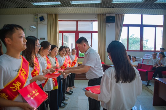9月10日下午,横山桥初级中学隆重举行2025年“江南实业集团有限公司教育基金”颁奖典礼。江南实业集团副总陈皓先生、横山桥初中党支部书记徐建文、党支部副书记俞银龙、副校长房静霞及全体教师出席大会,大会由学校办公室副主任顾伊雯主持。