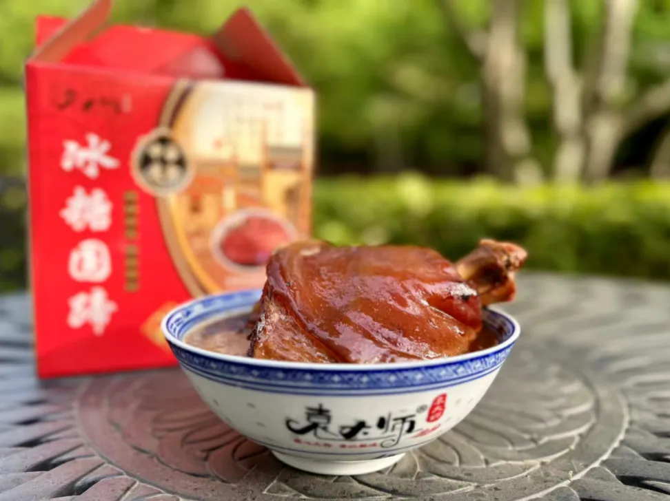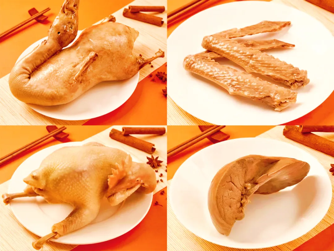 在常州经开区特色农产品区,有4家来自我们遥观的企业——酱香浓郁的蒋凤记卤制品、甜润醇香的玉螺泉甜白酒、酥烂味醇的冰糖圆蹄、咸鲜透骨的君鑫冠群鸭。