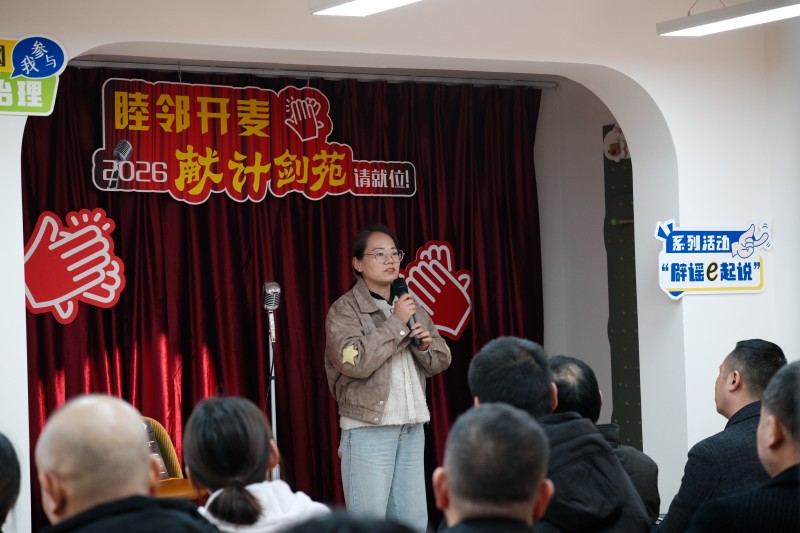 当天脱口秀包含“履职邻距离”“发展邻里说”“清朗邻守护”三个环节。在“邻距离”环节,路劲物业项目经理倪双燕积极回应居民对物业服务事项的关切,详细说明物业费使用情况及2025年重点工作成效,并对不在服务清单事项内容进行辟谣;在“邻里说”环节,6位楼栋代表畅所欲言地表达了对小区明年的期待,“儿童游乐场地地面可优化”“建议增设电动车雨棚”……社区物管委结合前期摸排和居民代表诉求建议,梳理形成2026年5项民生实事清单,并在现场进行初步表决;在“邻守护”环节,镇物管工作人员史文婷结合小区日常高频纠纷及投诉开展辟谣普法,引导居民不信谣、不传谣。活动推介了“阳光共治”表决小程序,业主可通过该平台知晓管理规约、公共收益使用等信息,实现治理数字化透明化。