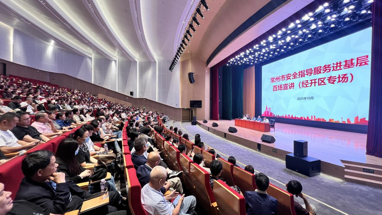 10月14日下午,常州市安全指导服务进基层百场宣讲(经开区专场)活动在经开区文化活动中心成功举行。本次活动目的是通过政策解读、案例警示、实务指导,帮助各镇、街道和广大企业进一步拧紧思想“安全阀”、筑牢责任“防护墙”,守住安全“生命线”。常州市应急管理局二级调研员陈忠,常州经开区应急管理局局长沈钱巍,常州市应急管理局政策法规处(执法监督处)处长李濠江出席活动,常州经开区应急管理局副局长、安委办主任吴志建主持会议,各镇、街道综安办相关人员和部分重点企业安全生产工作的负责人、安全员共500余人参加活动。