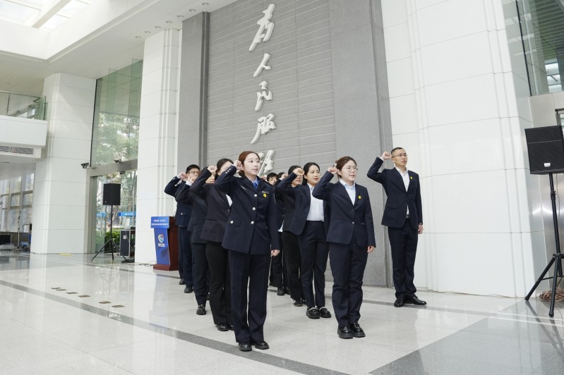 活动中,政务服务一线工作人员代表集体宣誓,以铿锵誓言许下微笑服务、高效履职、为民尽责的郑重承诺,把真诚微笑、优质服务融入工作中的每一处细节,让政务服务既有“效率”更有“温度”,以更优作风、更实举措、更暖形象履职尽责,为经开区“十五五”开局跑出“加速度”提供坚强的服务保障。